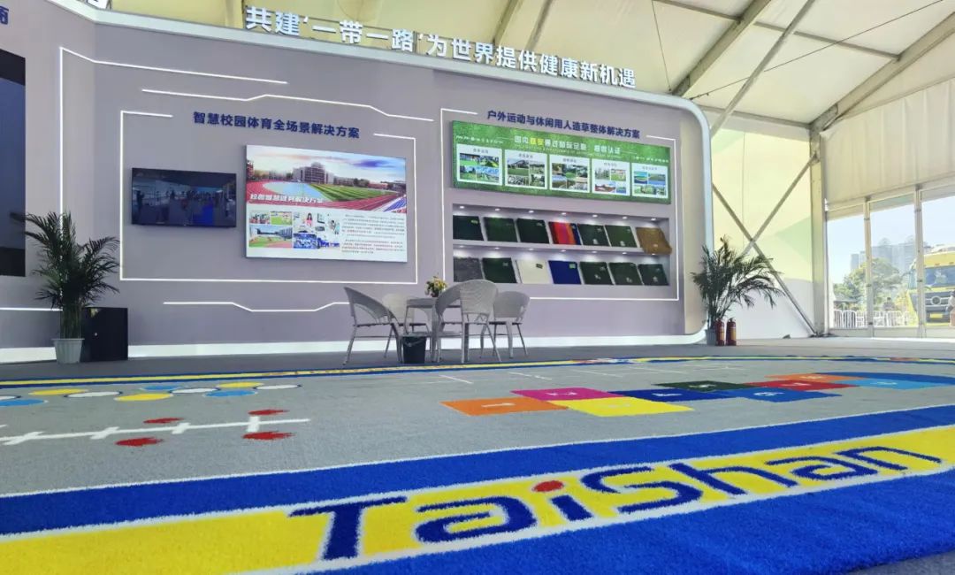 乐鱼集团携户外运动与休闲人造草整体解决方案亮相会场。作为国内首家通过足联、曲联双认证的企业可根据不同用户的户外运动需求,生产多种类型的户外运动草坪。